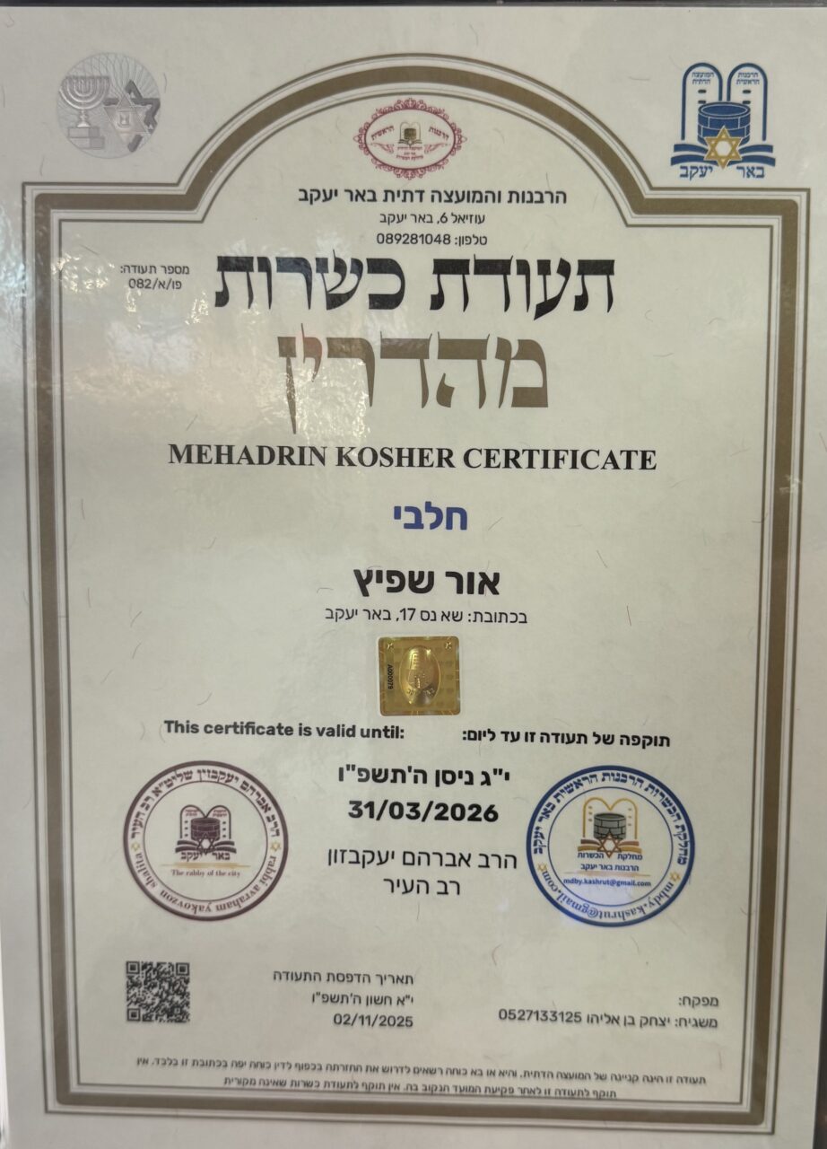 בעמוד זה מוצג צילום אותנטי של תעודת הכשרות שהתקבלה בתאריך 30/04/2025